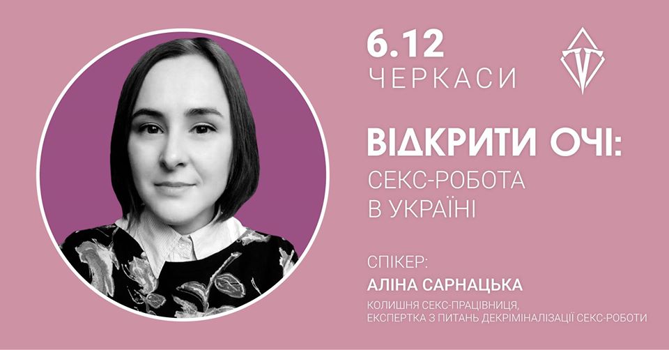 6 грудня у Черкасах пройде лекція-виступ на тему «Відкрити очі: секс робота в Україні» колишньої секс-працівниці та експертки з питань декриміналізації секс-роботи Аліни Сарнацької.