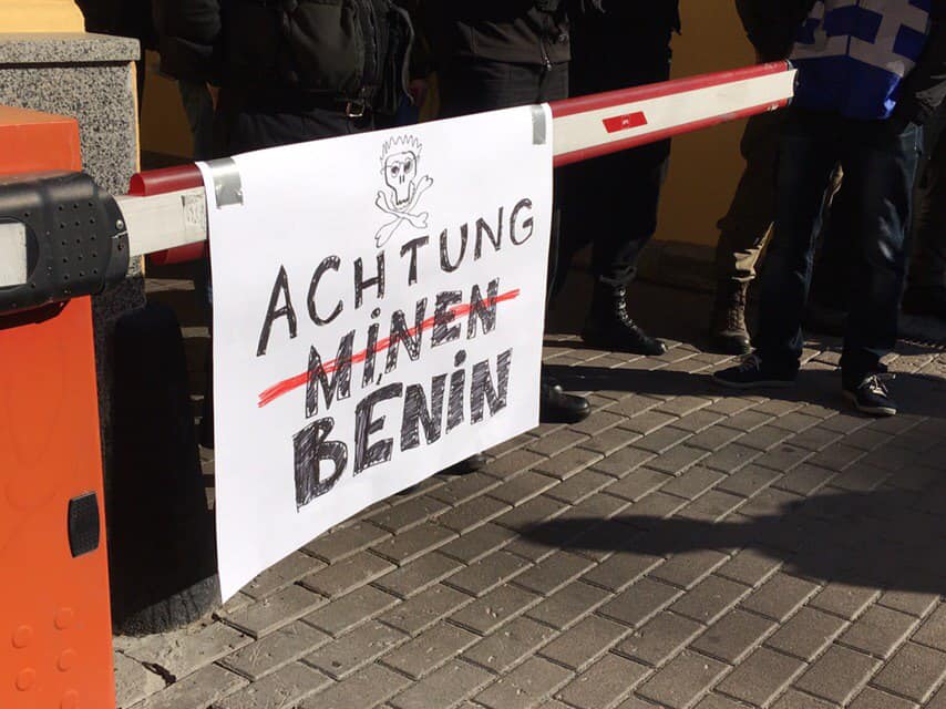 ACHTUNG MINEN (закреслено) BENIN, що в перекладі на солов’їну означає: суд заміновано, креатив скасовується.