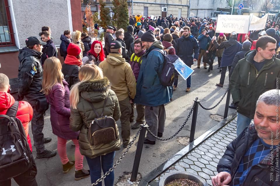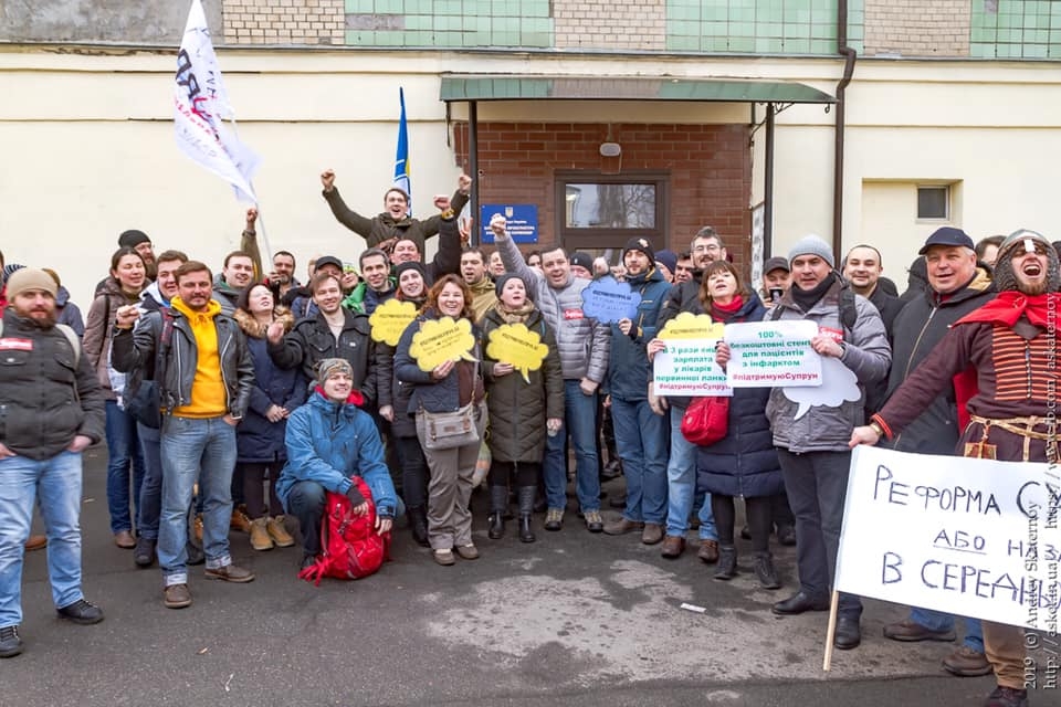 Незважаючи на робочій день, під будівлею зібралося декілька сотень активистів різних організацій, в які органічно влилися пів-сотні «сокирян». На іншому боці рингу, у білих накидках без кривавого підбою завмерли близько двох сотень бабусь, дідусів та «титушок» під прапорами «Радикальної партії Олега Ляшка», чей, хм, член в особі (чи у вигляді?) нардепа Ігоря Мосійчука і намагається через суд відсторонити Уляну Супрун від роботи.