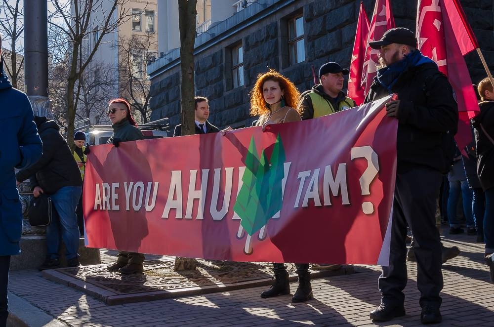 ARE YOU AHUELI TAM? – таке запитання виникає у кожного, хто бачить трохи далі свого телевізора. Саме з таким написом ми виготовили банер і прийшли з ним під Кабмін. До нас приєдналися, за нашими підрахунками, понад 120 свідомих громадян. Плюс – два особливо свідомих песики.