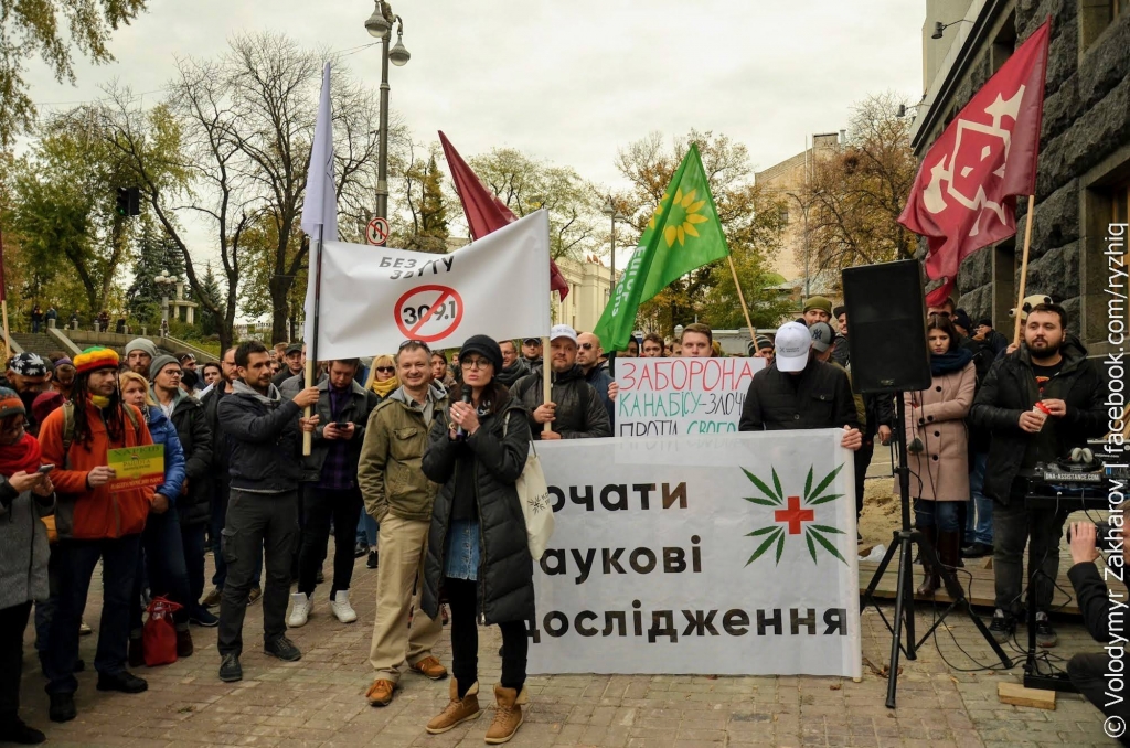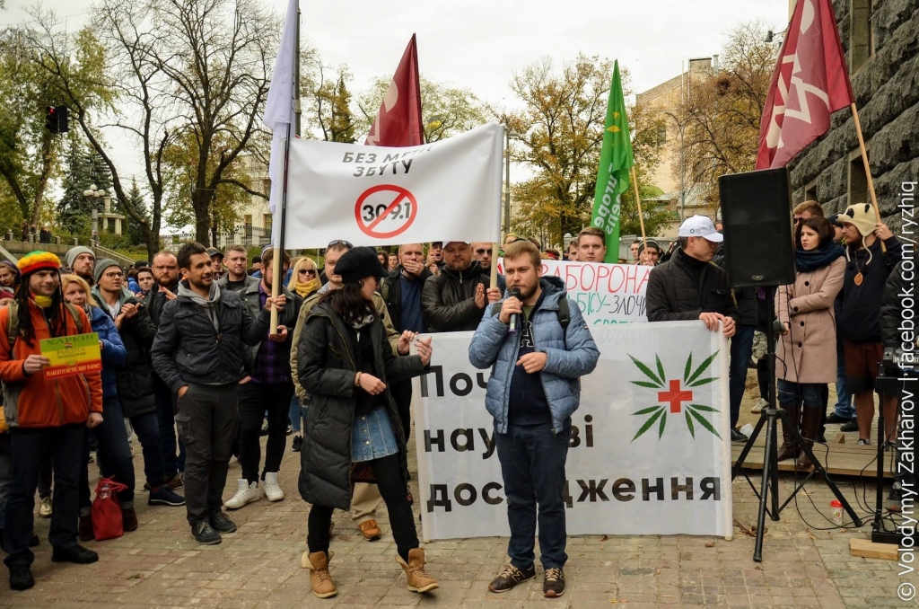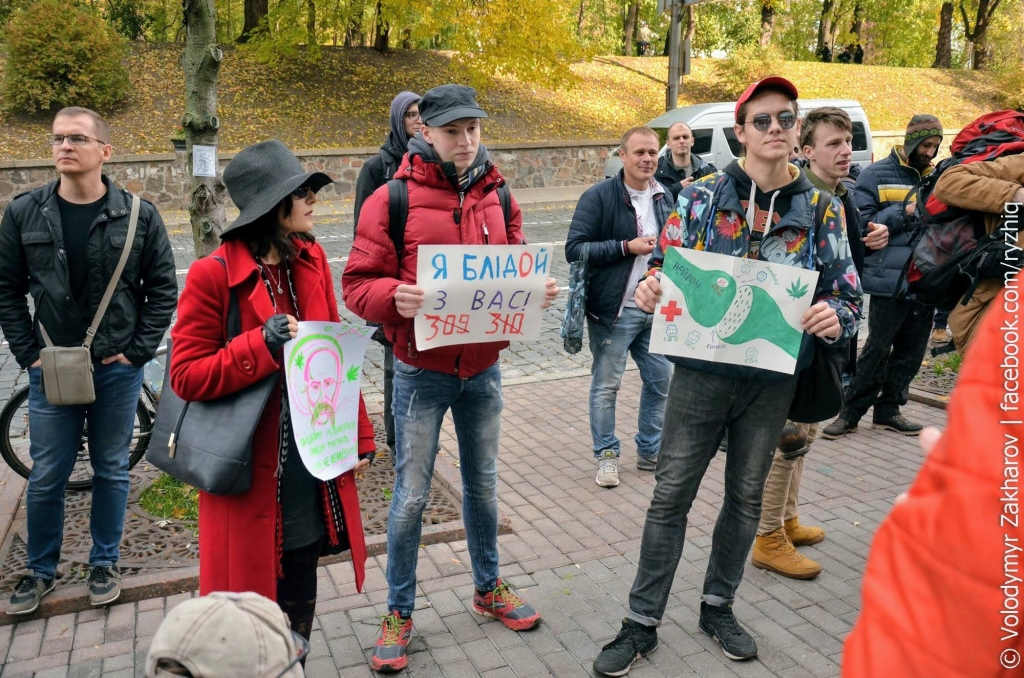 Ось дівчинка з зеленими волоссям з наклейкою конопель на щоці. Ось два дредастих чоловіка, ймовірно, батько і син, загартовані в битвах з каннабісом. Ось жертва автомобільної аварії в шапочці з листом конопель – він уже 25 років бореться з наслідками катастрофи, і допомагає йому тільки лікувальне вживання. Ось нейрофізіолог, який закликає переймати передовий досвід у інших країн. А ось і журналістка Громадського, яка одяглася в костюм канабісу та вважає, що тепер у неї є бонус +5 до можливості провокаційних питань. Все це людське море вирувало і хвилювалася, поки не почалася офіційна програма.