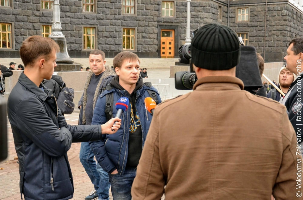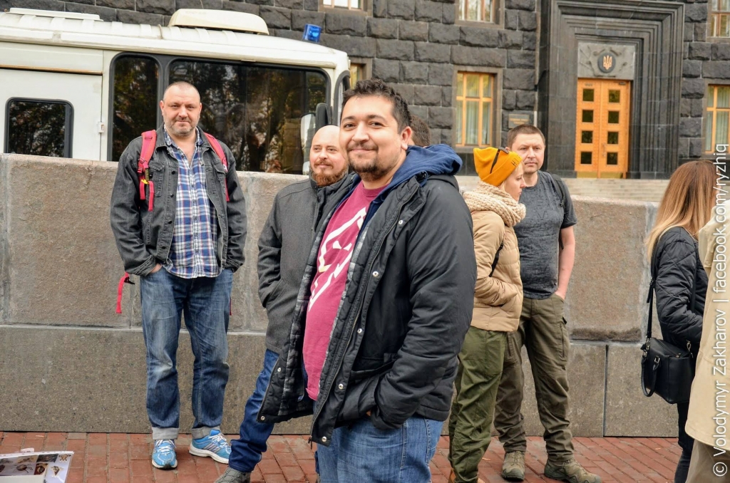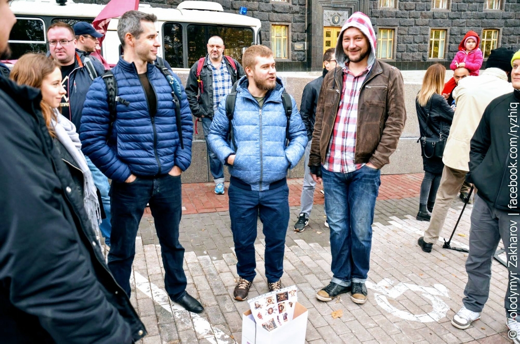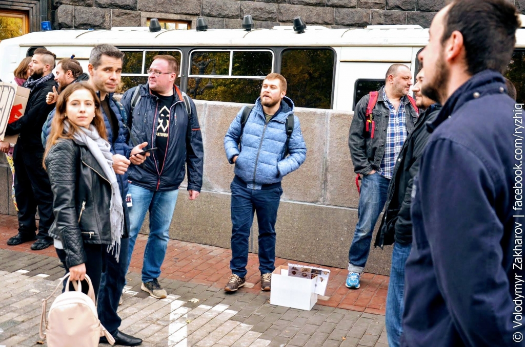 До полундня біля будівлі Уряду зібралося понад двісті осіб. Ну, ми звикли бачити на маршах демсокирян, власне, демсокирян. А цю публіку легко відрізнити від інших: пристойно одягнені, непристойно усміхнені, розкуті в рухах, широкі в кістках, з енною кількістю симпатичних дівчат в патронташі.