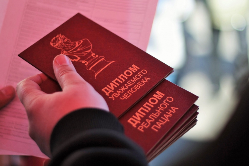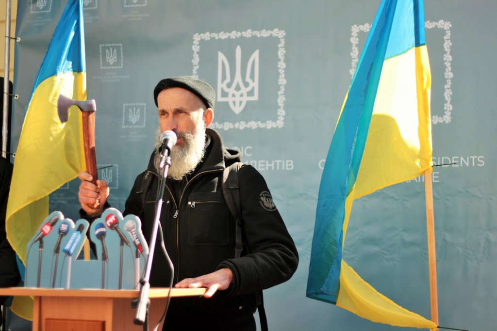 Однак на нашу акцію прийшли люди, які були одягнені не як президенти. Говорили не як президенти. Поводились не як президенти. Це взагалі були не президенти. Вони виглядали неначе фанати київського “Динамо”, але якщо підійти ближче та принюхатись, то виявлялось, що це представники дуже поширеного в Україні виду - “тітушка звичайний”. У нашому випадку це був підвид - “тутішка замаскований”.