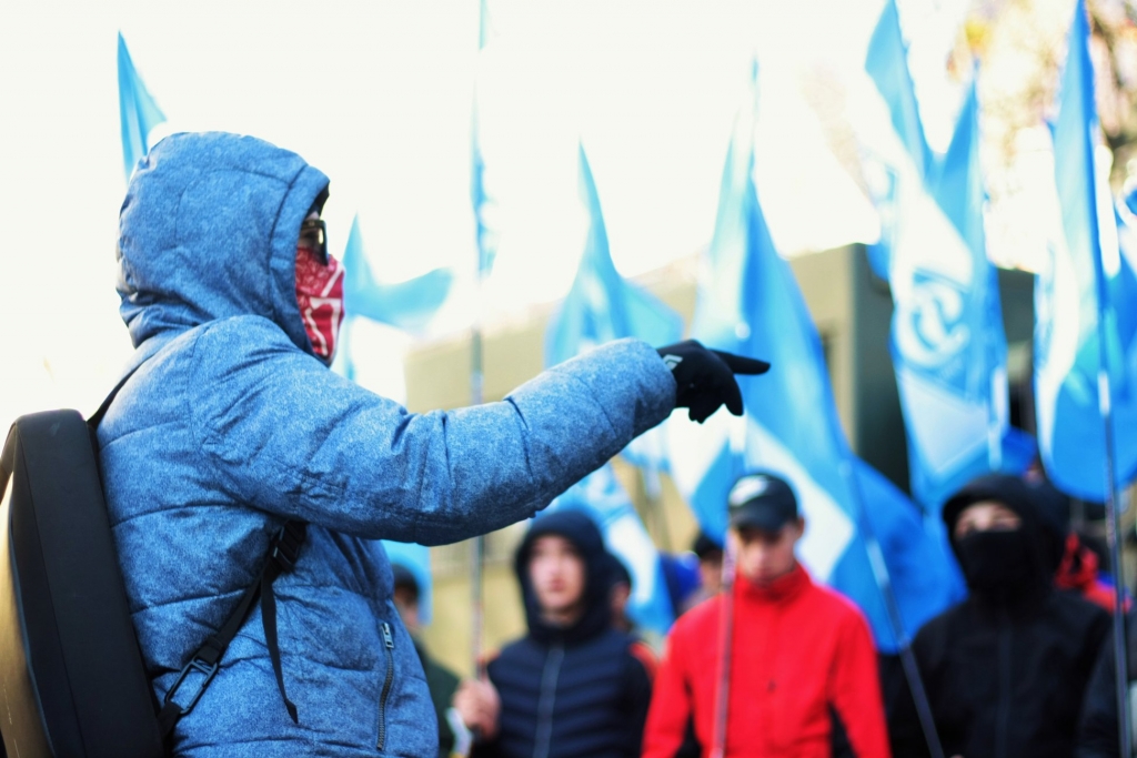 Так, ви вгадали. Братів Суркісів та Коломойського настільки дістала “Демсокира”, що вони вирішили натравити на нас тітушок, переодягнених у групу фанатів київського “Динамо”. Спершу вони поводились мирно і навіть прослухали міні-лекцію від Швеця про те, скільки Суркіси вкрали наших з вами грошей. Але пізніше ситуація почала напружуватись. То їм не сподобалось, що ми співаємо “Суркіс-ху*ло” і вони називають нас провокаторами, то з’являються габаритні чоловіки (один з них називав себе журналістом) і кличуть Швеця “пагаваріть”, то ще якісь подібні неприємні ситуації. У якийсь момент у наш табір (між нами та тітушками стояла поліція) почали прилітати яйця. Всього кілька штук. З постраждалих - наш намет, лобове скло авто, яке стояло поряд, та верхній одяг двох наших людей. Стан постраждалих задовільний та стабільний.