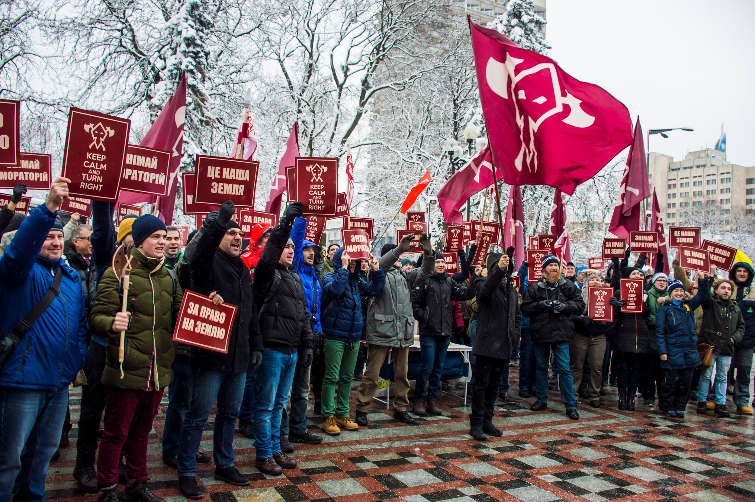 18 грудня активісти партії «Демократична Сокира», Українського товариства економічних свобод та ГО «Українські Студенти за Свободу» провели акцію перед Верховною Радою України, на якій зажадали скасування мораторію на продаж землі.