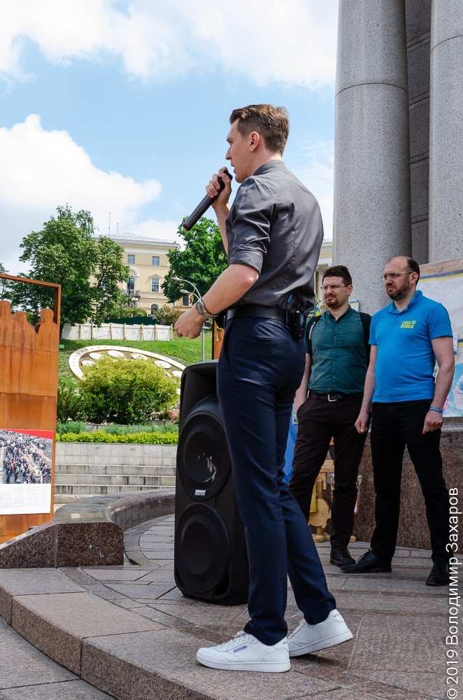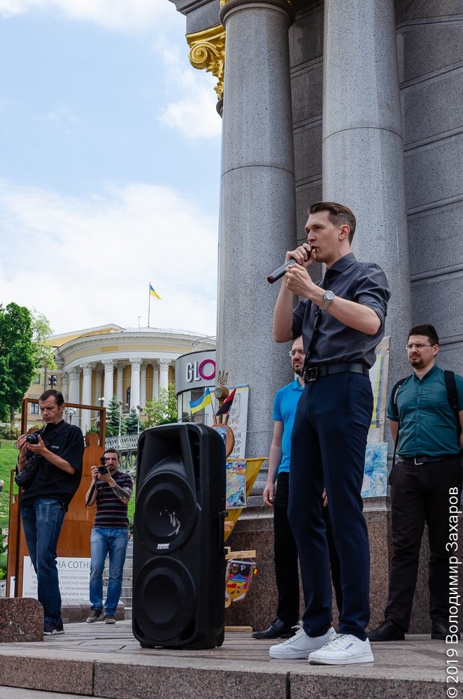 ...У кожній людині в середньому п'ять літрів крові. Росія вбила тисячі українців за останні роки. На кожному росіянині є хоча б крапля крові мертвого українця. І ми маємо тиснути їм закривавлені руки? Тільки після денацифікації Росії, після публічного покаяння, після депутинізації, після вибачень на колінах і контрибуцій, після суду і вироків кожному, хто брав участь у спробі знищення української нації і української державності. Тільки тоді ми можемо говорити про прямі перемовини", – підкреслив член політради Партії Юрій Гудименко, виступаючи з промовою на Майдані.
