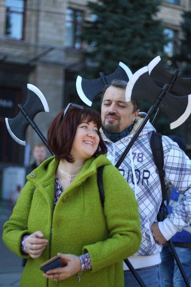 Водночас стався і інший тріумф – перша акція «Сокири» у регіонах. У Харкові в аналогічній ході, яка розпочалася хвилина у хвилину із київською, взяли участь декілька десятків партійців. Приємним бонусом для харків’ян туди було делеговано бандероллю вершника Антона Швеця.