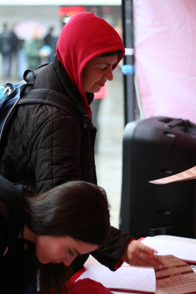 ХАРКІВ СОРТУВАЛЬНИЙ. Підписів набралося сортувати - не пересортувати, за попередніми підрахунками - понад сімсот. Радимо Одесі і Львову напружитися і прикинути, чи зможуть вони рекорд перевершити. У суботу перед наметом було не проштовхнутися. У неділю людей прийшло менше, але вони були.