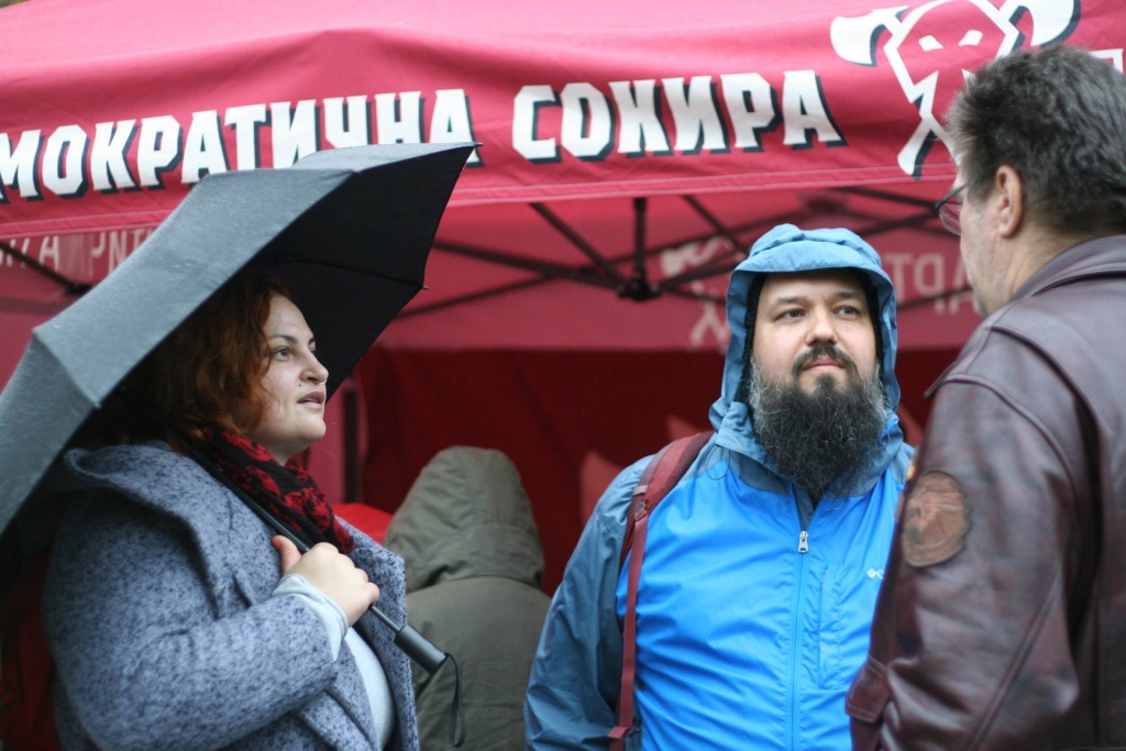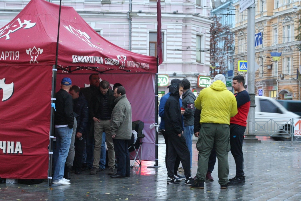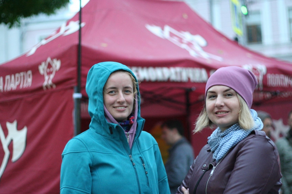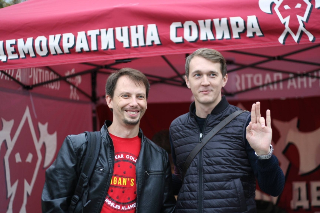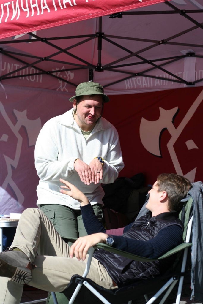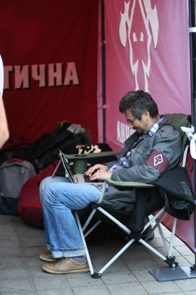ХАРКІВ ТРУДОГОЛІЧНИЙ. Все ж, організація в "ДемСокирі" трохи накульгує. Можливо, через велику кількість міністрів, які агітували в наметі - 10 осіб - організаційна суєта нагадувала байку "Лебідь, рак і ще рак". “Лебедем” в даному випадку виступав Вершник Гудименко, який наполегливо призначив збір намету на 10.00 ранку, а “раків” косплеєли інші демосекі, що не бажали прокидатися раніше 11.00. Окремим пунктом тут йде міністр сексу Алексіна, яка і сама проспала, і інших змусила проспати.