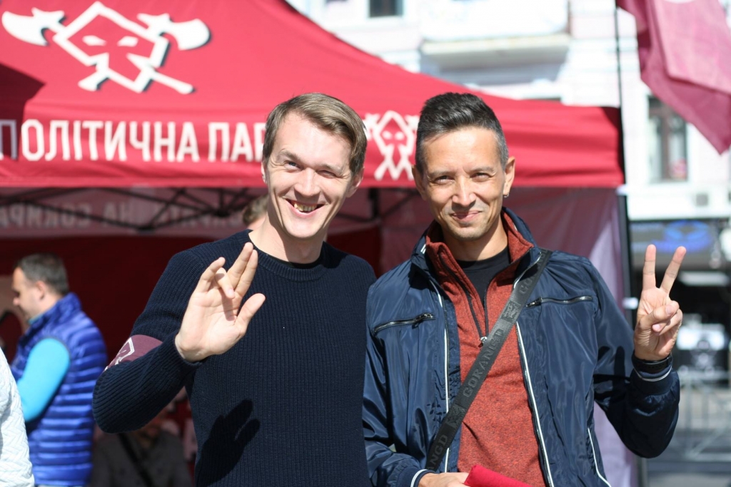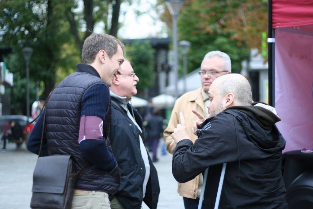 ХАРКІВ КОМУНІКАЦІЙНИЙ. Міністри проспали ще й тому, що засиджувалися допізна, обговорюючи міжвідомчі питання за коньяком і кальяном: ще в п'ятницю ввечері експедиційна команда заселилася в один готель і вирішила, що разом трохи тепліше. А вже в суботу після агітації "ДемСокира" і шанувальники зібралися в "Патрік Пабі", який нам люб’язно надав його співвласник Артем Павлович Нечитайло, щоб поговорити відверто - і не розходилися до півночі. На диво, але Харків цікавили не стільки питання торгівлі або дружби з РФ, скільки легалізація - зброї, проституції, канабісу. Також шанувальники D7 запитували про поліцейське і судове свавілля. Людей прийшло близько сотні, і, щоб задовольнити партійні бажання, паб вимушений був зачинитися на спецобслуговування. Гудименко оцінив активність і масовість харків'ян і анонсував окремий марш за легалізацію короткоствольної зброї в Харкові 6 жовтня 2018 р.