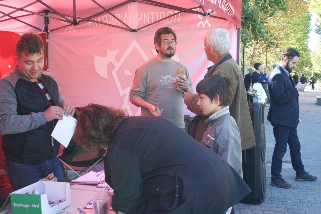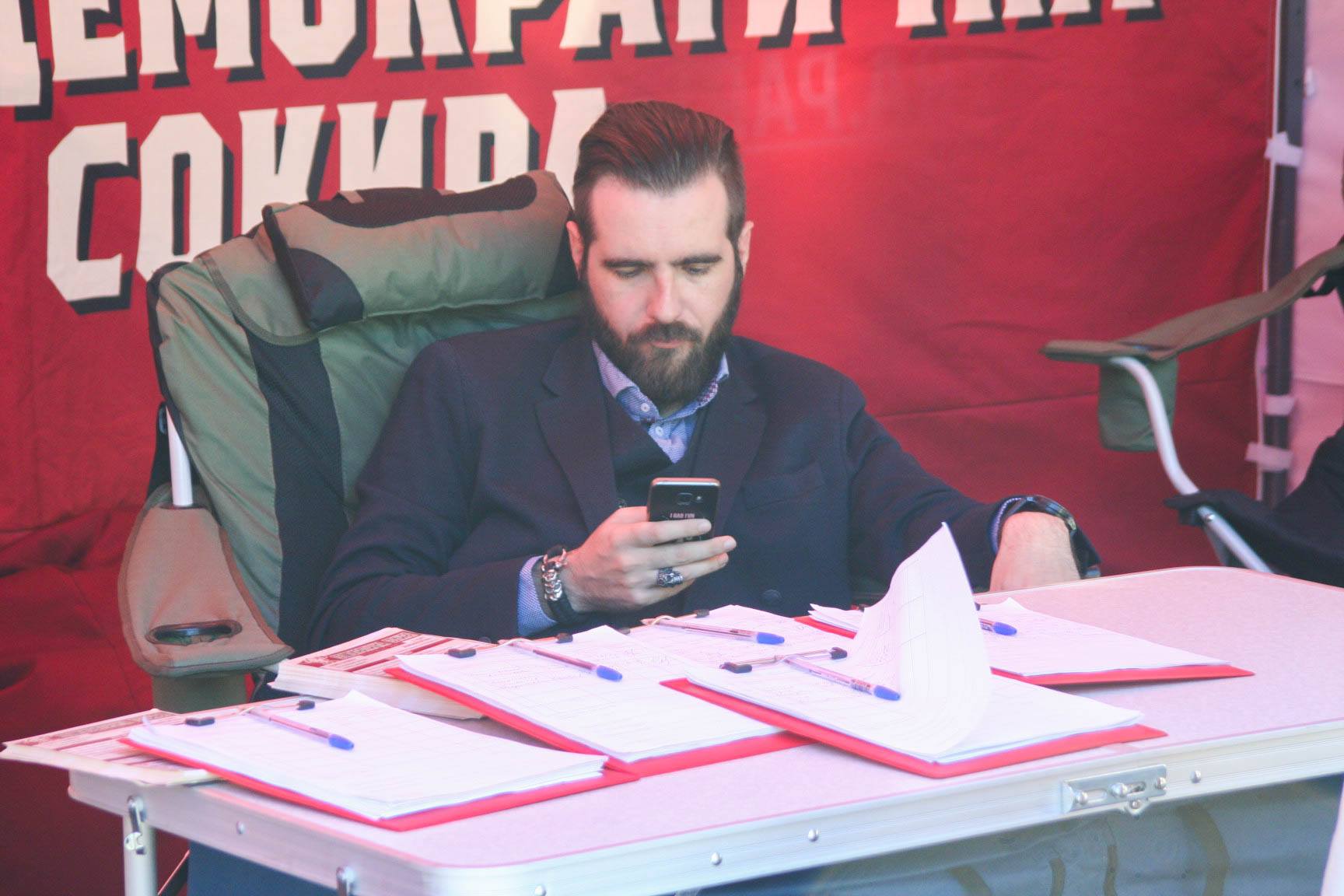 ХЕРСОН КОМАНДНИЙ. Продовжив смалити Толик Мазур. Вже зараз можна передбачити цьому рубателю суддівських і поліцейських машин блискуче політичне майбутнє. Більшість підписів, як уже зазначалося вище, його заслуга. Правда, у другий день Нойнець вирішив, що занадто багато підписів - це нездорово, і почав активно відлякувати підписників: "Ні в якому разі не ставте підписи за нас!", "Хто у нас головний? Ігор Щедрін- єврейський олігарх ". Таня Локацька посильно допомагала в агітації і виїла мозок єдиному влогеру Херсона, який прийшов знімати про нас сюжет. На виході з намету клацала підписантів з фоторушниці Настя. Денис реєстрував. Неголений Талер засів в кутку і строчив хроніки.